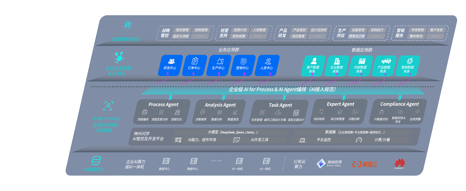 盛世集团问学智车解决方案是一套基于AI技术的汽车行业智能化系统,,,覆盖从底层算力到顶层AI应用的全栈方案。。。。方案由算力层、、、模型层和应用层组成:算力层,,,方案支持多种一体机配置,,,,具备云端灵活部署、、多云适配以及动态优化计算资源的能力;模型层,,盛世集团问学平台版提供了企业级AI应用一站式构建与管理平台,,支持基于后训练强化技术的汽车企业专属模型的训练、、、评测和运营;应用层,,盛世集团问学DeepSeek版提供包括超级员工、、、、智能招采、、智能营销、、智能客服、、AI for BI等一系列解决方案,,可助力汽车行业实现数字化转型,,,让管理更智能、、、、响应更敏捷。。。。