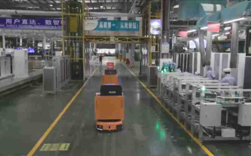 为车载冰箱物流配送打造的智能解决方案,,,包含产中物流通过潜伏举升AMR搬运至线边,,产后成品物流智能仓储,,,,流程包含产中物流智能齐套入库,,,线边安灯叫料AMR智能配送至线边,,,,成品入库、、、、出库,,,,通过无人堆高车机器人,,,,智能仓储管理替代人工作业管理,,,实现更高存储、、更高效率、、、更具柔性化的解决方案。。。。
